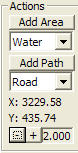 Here you can add an Area or a Path, by selecting first the Area or Path type you want to add and press the corresponding button. After that the mouse cursor will change shape wile hovering over the Tile image, and you can click and drag to draw the Area or Path you want.