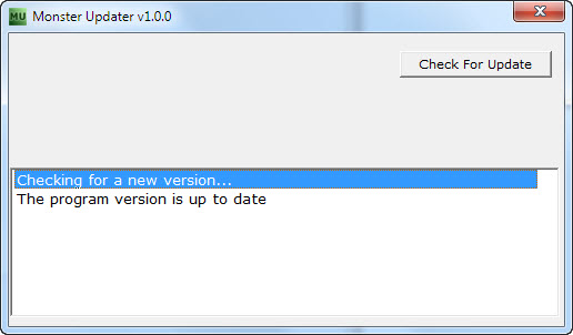 Whenever you run this program, it will check for an update and apply it if one is found. If an update is found, if an application window is open, Monster Updater will close it in order to allow the program files to be overwritten.